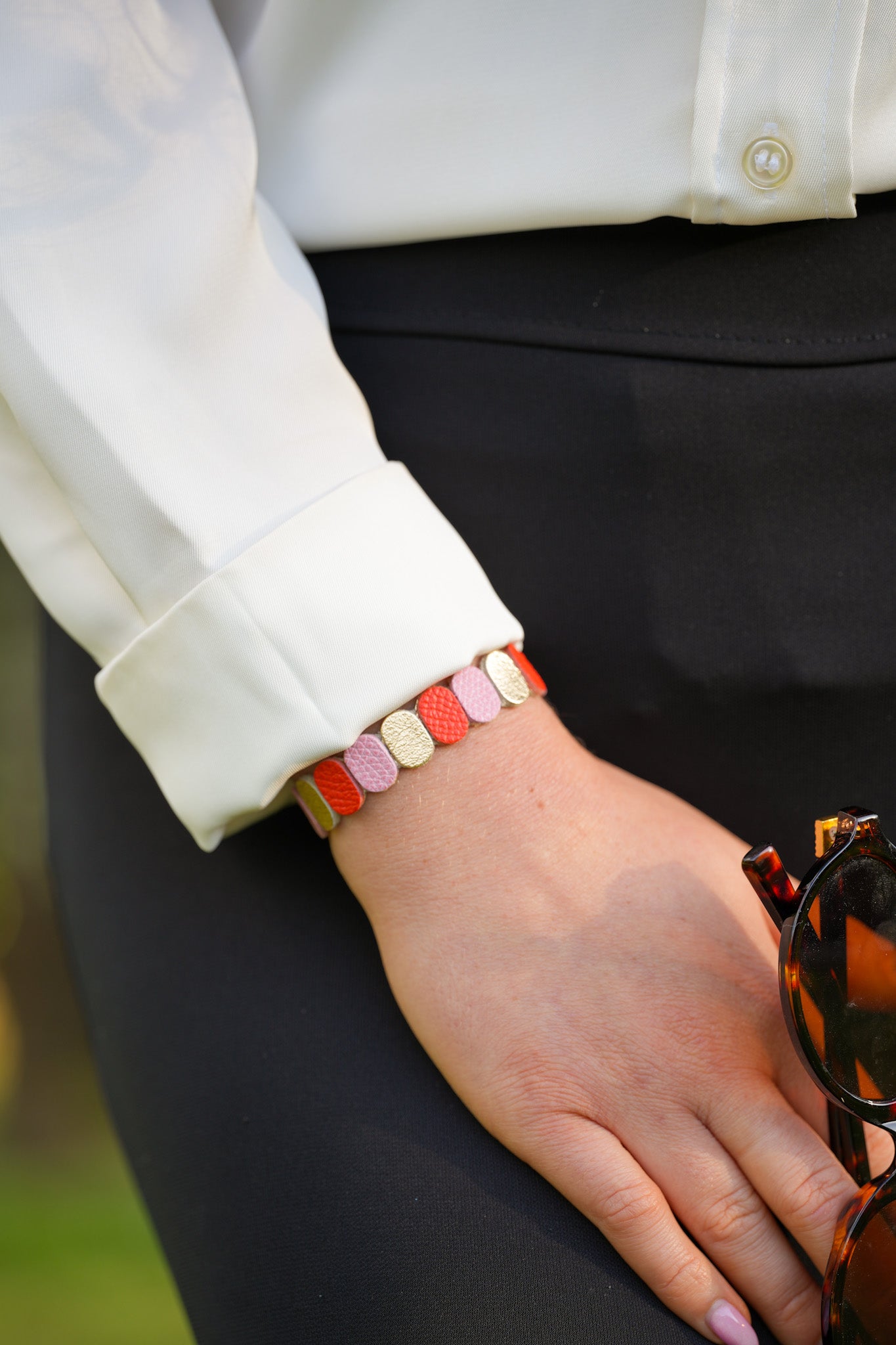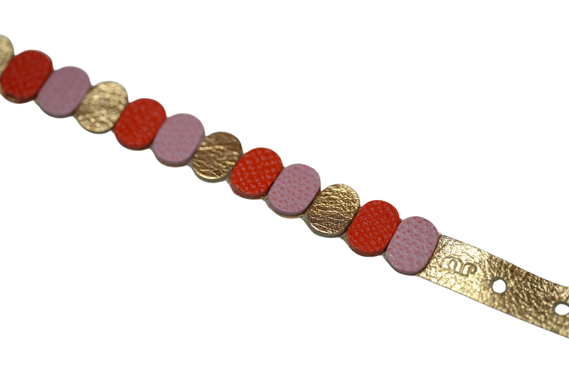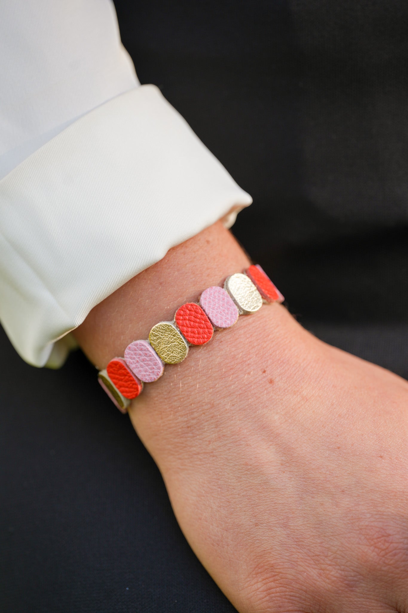 Découvrez notre bracelet tricolore, mêlant l’énergie de l'orange, la tendresse du doré scintillant et la douceur du rose perlé. Un bijou audacieux et délicat, soigneusement conçu pour sublimer vos tenues avec une touche de couleur vibrante et sophistiquée.