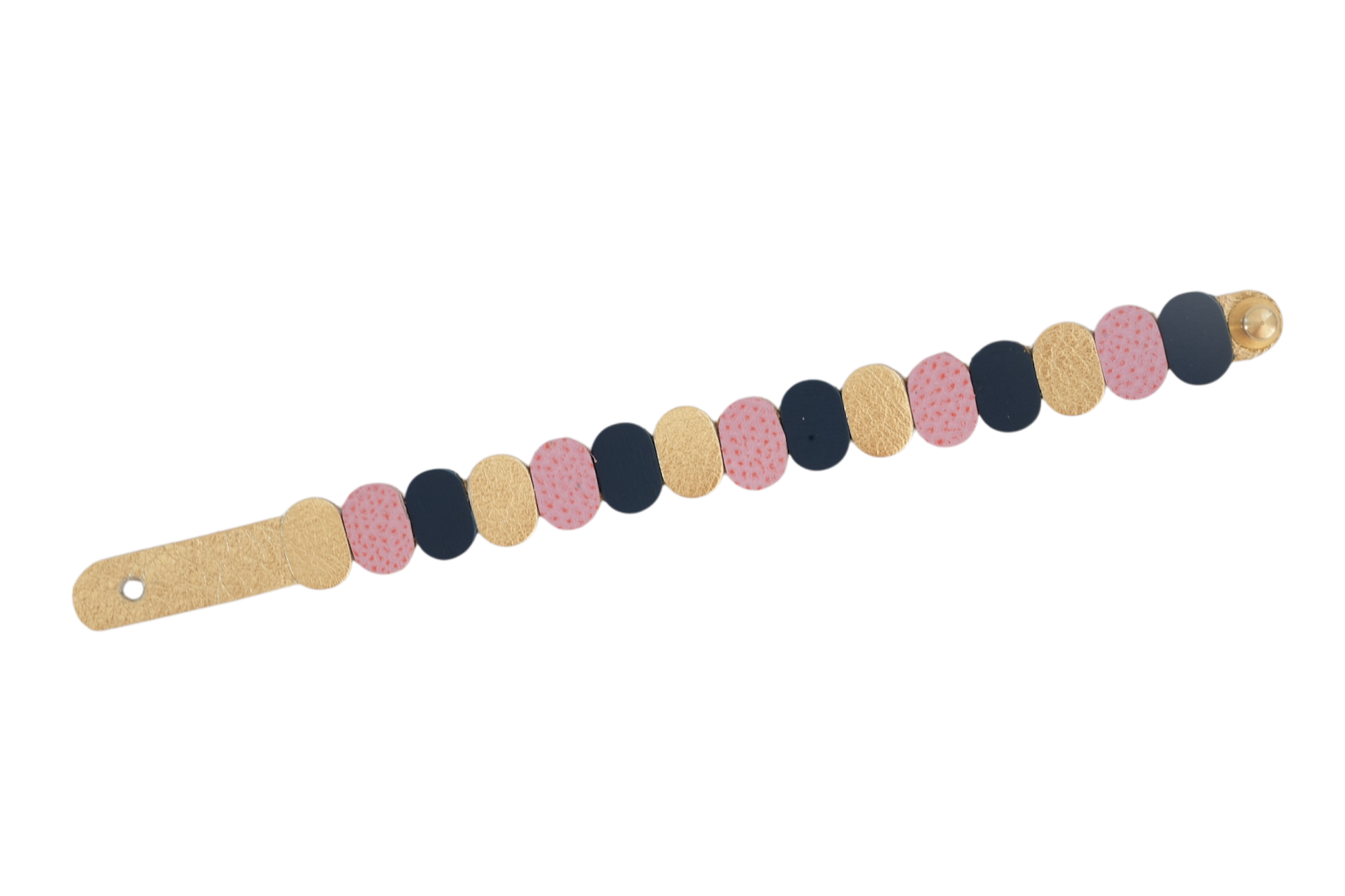 Découvrez notre nouvelle collection de bracelets, alliant la profondeur du bleu nuit, la douceur du rose perlé et la brillance du doré. Un bijou qui marie subtilité et éclat pour apporter une touche raffinée et lumineuse à vos tenues.