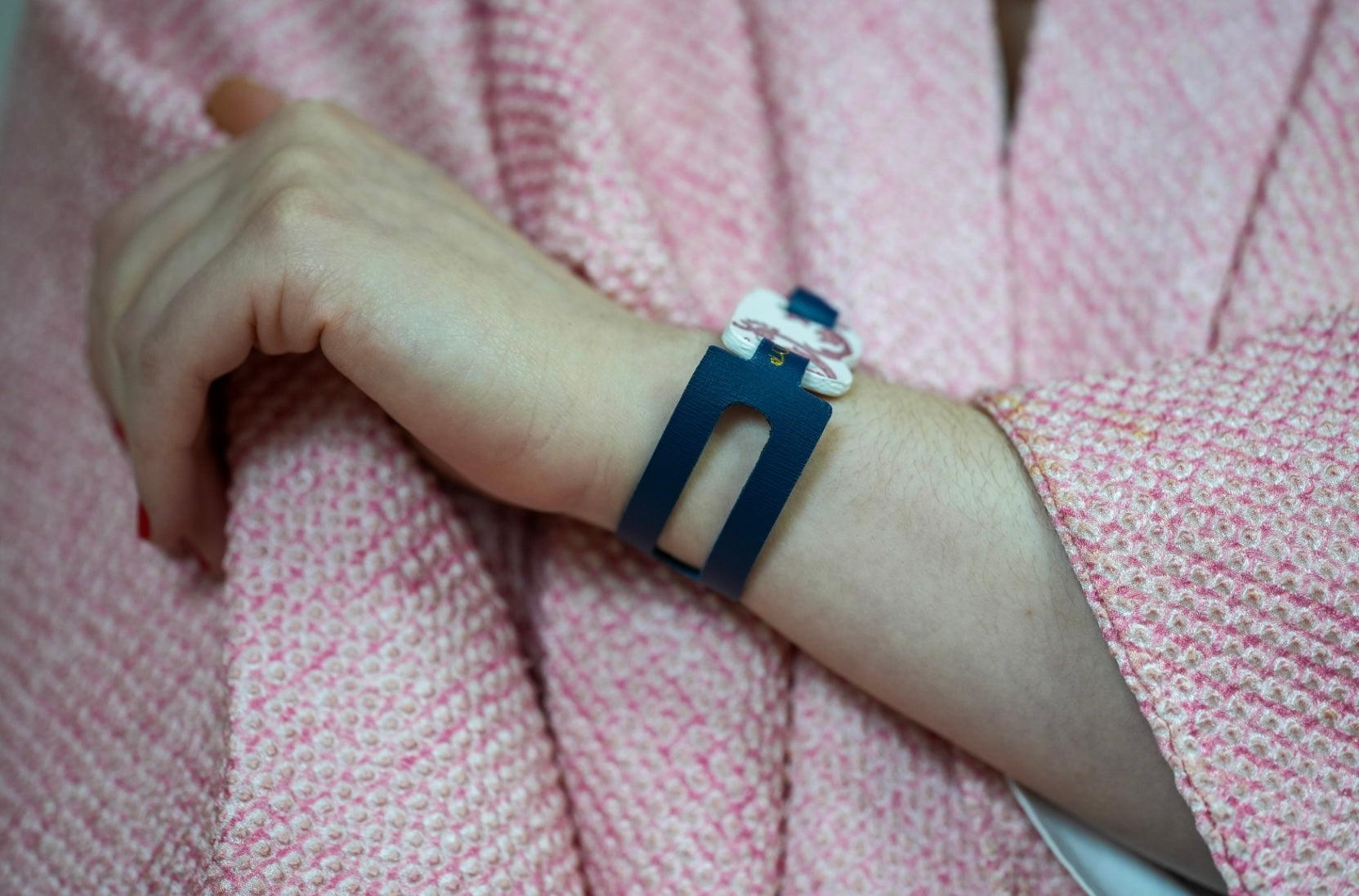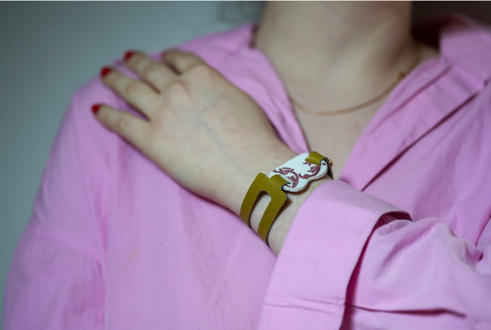 Le cuir est beau et le bracelet est très joli , cependant je ne suis pas fan de la couleur de la faïence...j’aurai préféré comme sur la photo une couleur rosé plutôt que beige et marron . Ces tons correspondent moins à la personne qui va le recevoir ...